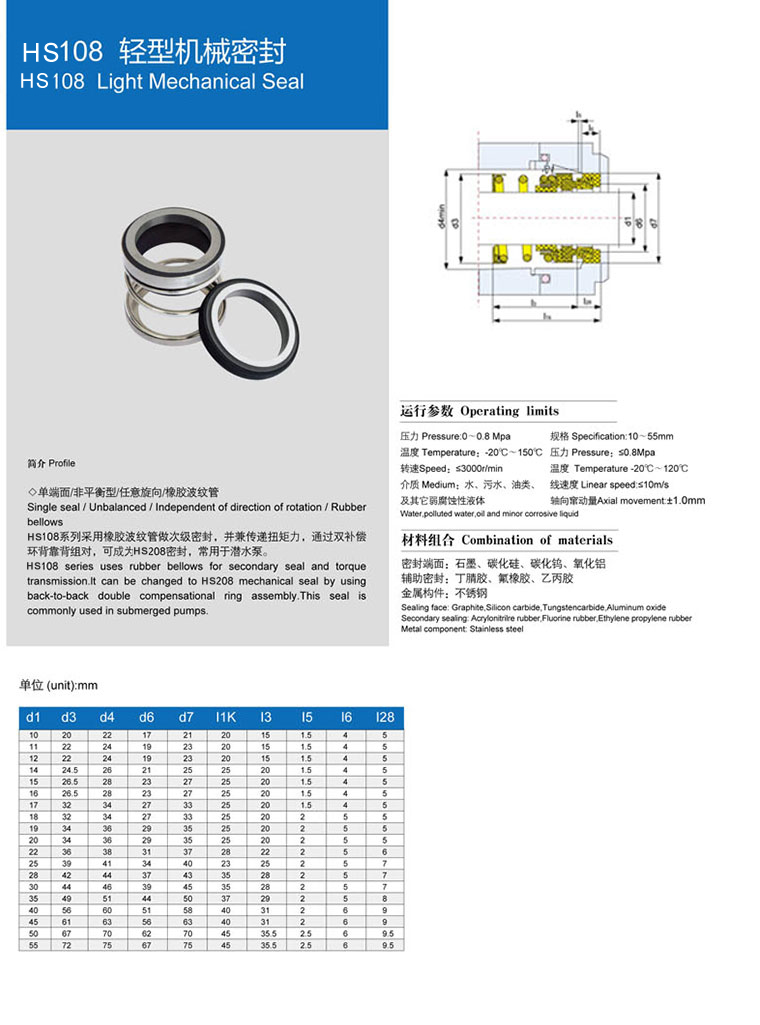 HS108輕型機(jī)械密封系列