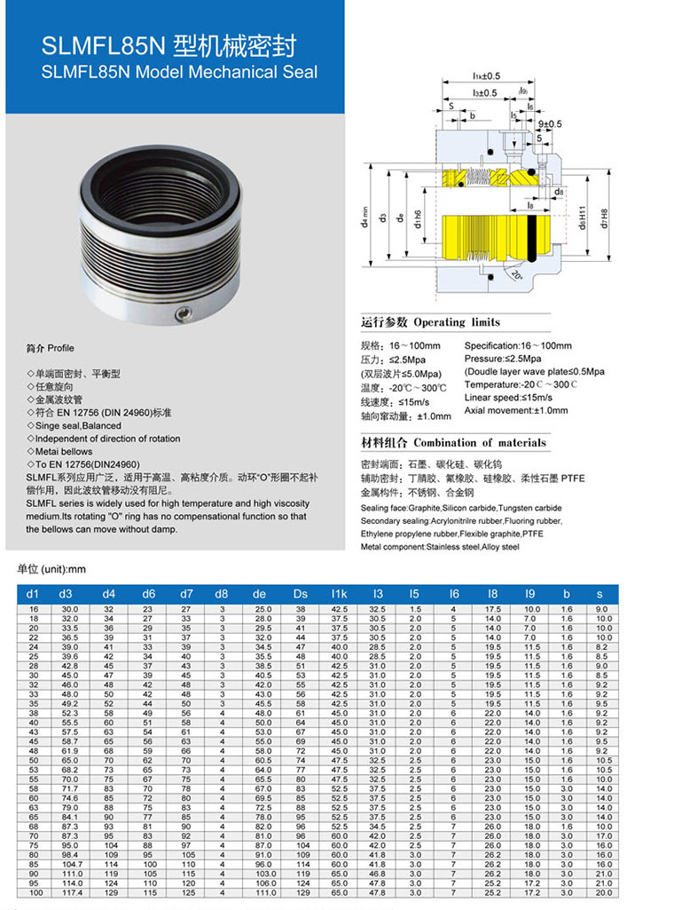 • 型號:???SLMFL85N型機(jī)械密封