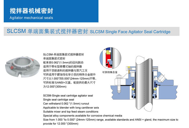 • 型號:???SLCSM 單端面集裝式攪拌器密封